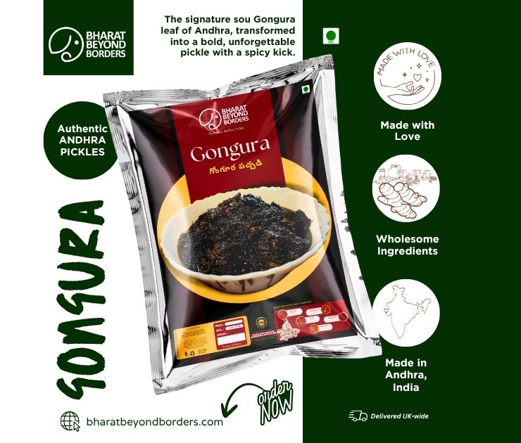 An authentic Andhra favourite, our Gongura Pickle blends fresh gongura leaves, ginger, and aromatic spices. Its tangy and spicy taste makes every meal special. A traditional Indian pickle for spice lovers in the UK.